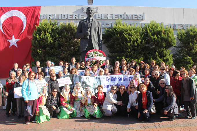 Ahmet Piriştina Demokrasi meydanında bulunan Atatürk heykeline çelenk sunumu ile başlayan tören saygı duruşu ve istiklal marşının hep bir ağızdan söylenmesi ile devam etti. Ellerinde kadına yönelik şiddeti protesto eden dövizler ve pankartlar taşıyan kadınların, hep birlikte andımızı söylemesi büyük alkış aldı. Türk kadınına seçme ve seçilme hakkının verilişinin 79.yıl dönümünü dolayısıyla Narlıdereli kadınlar adına bir konuşma yapan Narlıdere belediyesi meclis üyesi Mükerrem Demir ‘Ulu Önder Mustafa Kemal Atatürk’ün bizlere verdiği ama bizlerin yeterince kullanamadığı, yıllardır kadınıyla, erkeğiyle bir arada coşku ile kutladığımız kadına seçme ve seçilme hakkının verilişinin 79.yıl dönümünü hepimize kutlu olsun’ diyerek sözlerine başladı. Demir “ Sadece Türkiye’de değil, tüm dünyada aydınlanmanın öncüsü olan Atatürk’ün en büyük eseri laik, demokratik Türkiye Cumhuriyeti’nin amacı kadın erkek bütün dinamikleri ile ulusal kültürümüzü çağdaş uygarlık aşamasının en yüksek düzeyine ulaştırmaktır. Her zaman siyasetin içindeyiz. Etkinliklerde en önde yerimizi alıyoruz. Biz Narlıdereli kadınları olarak başkayız. Bununla ne kadar övünsek azdır. Geçtiğimiz yıl 5 olan belediye meclis üyesi aday adaylığı sayısı bu sene 20’ye yükseldi. Şimdiden kendilerine başarılar diliyoruz” dedi.