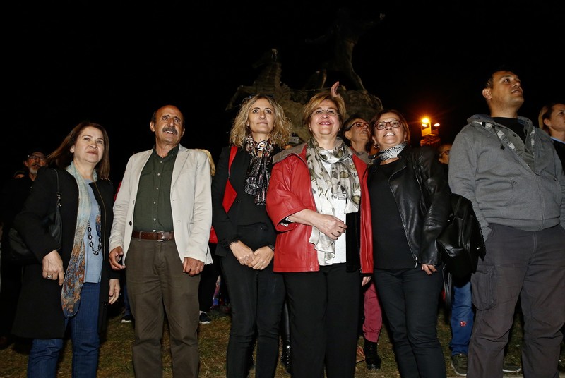 Gecede konuşan Konak Belediye Başkanı Sema Pekdaş, müzikte 50 yılı geride bırakan Moğollar grubuna teşekkür ederek söze başladı. Bu yıl cumhuriyet coşkusunu şarkılar söyleyip, dans ederek kutlamak istediklerini dile getiren Pekdaş, “Cumhuriyet’in tam demokrasi olması için bayrağı hep yükseklerde tutuyoruz. Bu şehrin ruhunda direniş var, bu şehrin ruhunda emperyaliste geçit yok. Emperyalist işgale karşı ilk kurşunu atanlar nasıl ki bu ülkenin bağımsızlık mücadelesini yükseltmek için ilk adımı attılarsa bugün de İzmir’in üzerinde böyle bir sorumluluk var. Çünkü bu şehir özgürlükler şehri… Biz kadınlar ve erkekler el ele kol kola şarkılar söylüyor, kol kola geziyoruz. Sizler kadınları yönetici seçiyorsunuz bu şehirde… Bu şehrin ruhu başka. İşte Türkiye’nin ihtiyacı olan da bu” dedi.