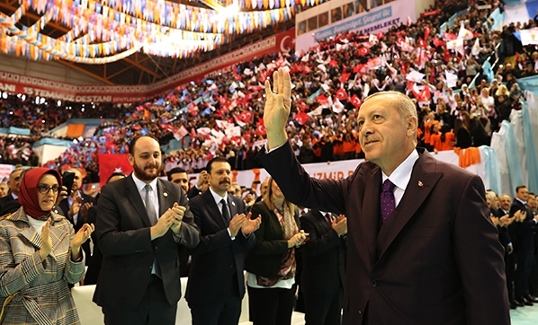 AKP Genel Başkanı ve Cumhurbaşkanı Recep Tayyip Erdoğan, partisinin İzmir'in ilçelerinde göstereceği adayları tanıttı. Erdoğan, burada yaptığı konuşmada 'Gelin, İzmir'i yeniden demokrasinin merkezi yapalım' dedi.AKP İzmir'in beş ilçesinden MHP adaylarını destekleyecek.