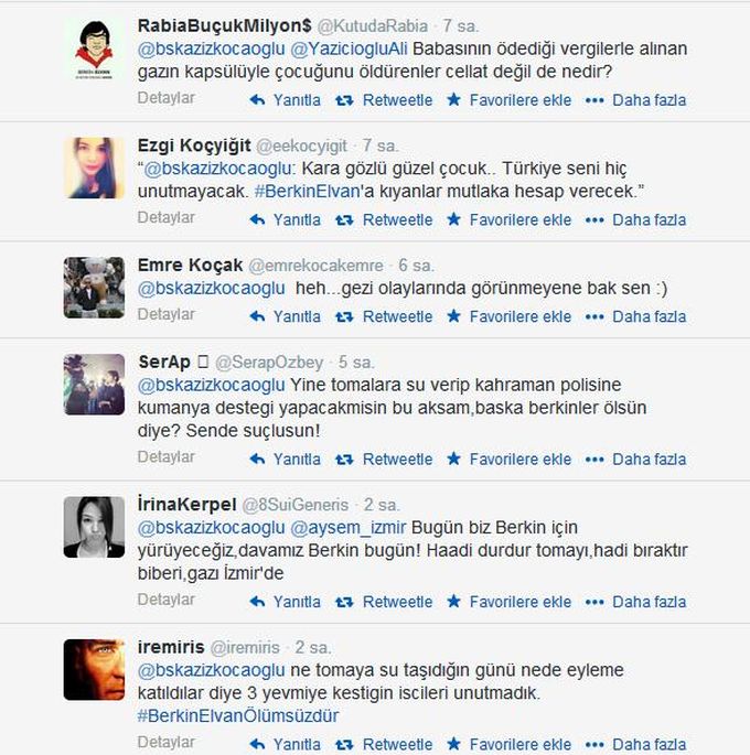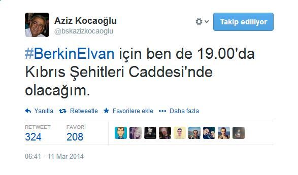 Başkan Kocaoğlu Twitter hesabından, “Kara gözlü güzel çocuk… Türkiye seni hiç unutmayacak. #BerkinElvan 'a kıyanlar mutlaka hesap verecek. #BerkinElvan için ben de 19.00'da Kıbrıs Şehitleri Caddesi'nde olacağım” diye yazdı. Kocaoğlu’nun bu paylaşımları ise bazı İzmirliler tarafından sert tepki ile karşılandı.
