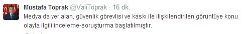 Vali Toprak, Twitter'da şu mesajı yayınladı: