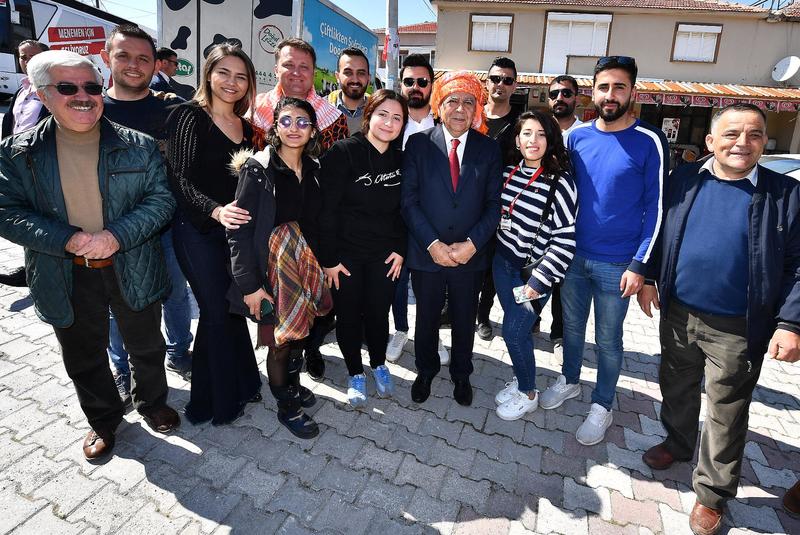 CHP Belediye Başkan Adayı Serdar Aksoy ve İlçe Başkanı Serdar Değirmenci ile çıktığı Menemen turunda vatandaşlarla sohbet eden Başkan Aziz Kocaoğlu, her ziyaretinde büyük ilgi gördü. Başkan Kocaoğlu, hem ilçe başkanının hem de belediye başkan adayının arasında otururken, “İki Serdar arasında, belediye başkanlığını kazanmamız için dilek tuttum” dedi.