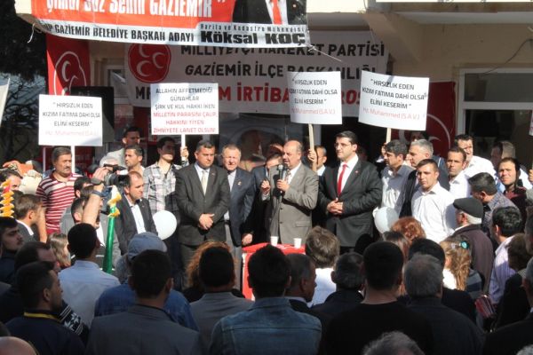 Seçim çalışmalarına hız veren MHP’nin belediyecilikteki deneyimli adayı Murat Taşer, Sarnıç’ta düzenlenen mahalle toplantınsa katıldı. Taşer’e MHP Grup Başkanvekili ve İzmir Milletvekili Oktay Vural ile Gaziemir Belediye Başkan adayı Köksal Koç eşlik etti. CHP’nin her zaman yaptığı gibi yine aynı politikayı izlediğini ve ‘İzmirliye ölümü gösterip sıtmaya razı ol’ benzetmesi yaptığını belirten Taşer, “17 Aralık’tan sonra AKP’nin siyaset yapma şansı yok.