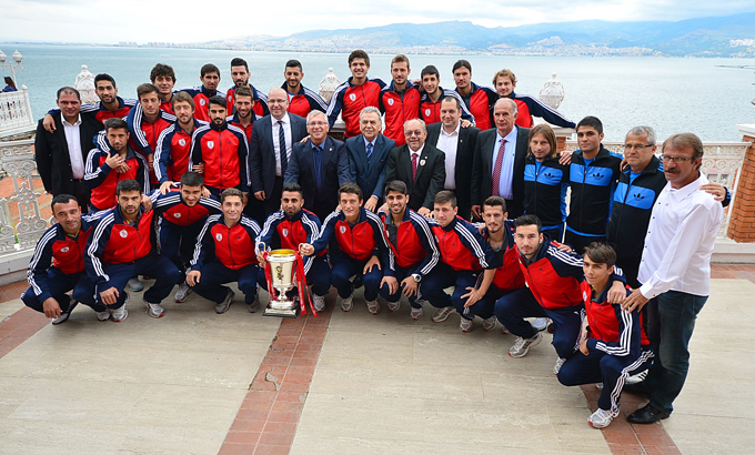 Altınordu Futbol Sosyal Girişimi Başkanı Seyit Mehmet Özkan, Altınordu Futbol Direktörü Murat Dizdar, yönetim kurulu üyeleri Dr. Salih Mertan, Zafer Bilgetay, Barış Orhunbilge ile teknik ekip ve futbolculardan oluşan grubu tek tek kutlayan Başkan Kocaoğlu, üst üste şampiyon olarak 1. Lige çıkan kırmızı-lacivertli ekibin İzmir futbolunda bir şeylerin başarılabileceğini kanıtladığını söyledi. Altınordu’nun, ‘İyi birey, iyi vatandaş, iyi futbolcu’ gibi insanın kendisini işine ve milletine adamasını çağrıştıran bir slogan ile yola çıkarak başarılı olduğunun altını çizen Başkan Kocaoğlu, şöyle devam etti: