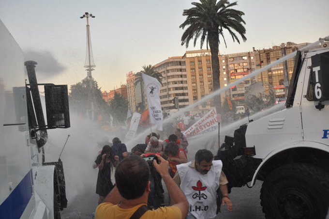 Çok sayıda eylemci tazyikli su ve biber gazından etkilendi.