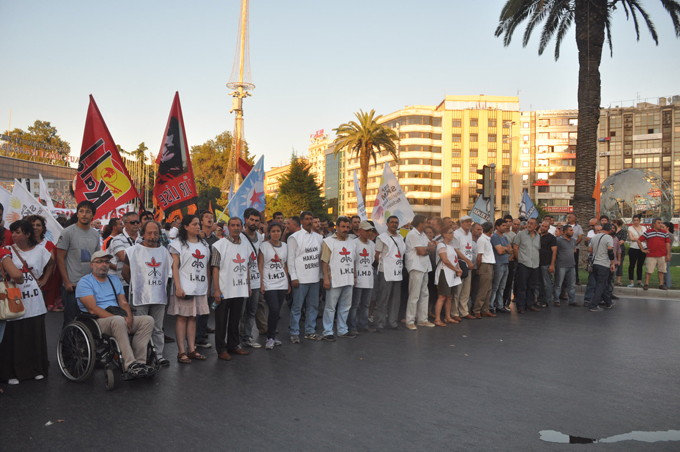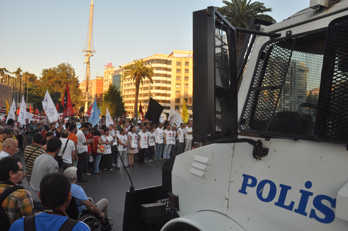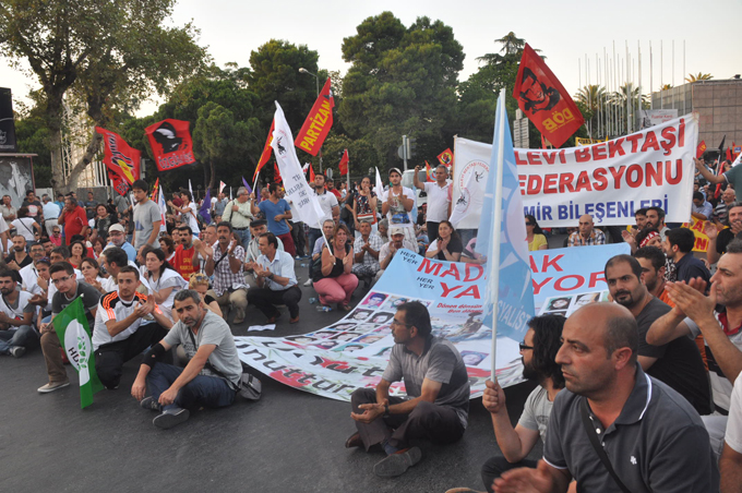 Bundan tam 21 yıl önce Sivas'ta Madımak Oteli’nde yakılarak öldürülen 35 kişiyi İzmir’de anmak için saat 19.30’da Alevi Bektaşi Federasyonu'nun çağrısıyla Basmane Meydanı’nda bir araya gelen İzmirliler polis engeliyle karşılaştı. Burada toplanarak yürüyüş yapmak isteyen gruba polis izin vermedi. Emniyet Yetkilileri ile İnsan Hakları Derneği Yetkilileri arasında yaklaşık bir buçuk saat süren görüşmeler sonuç vermedi. Eylem komitesi yetkilileri görüşmek için Valiliğe telefon ettilerse de yanıt alınamadı. Her yıl yürüyüş yapıldığına ve yürüyüşün Anayasa’ya uygun olduğu konusunda ısrar eden eylemcilere rağmen Emniyet şehrin an arterlerindeki trafik yoğunluğunu gerekçe göstererek yürüyüşe izin vermedi ve “dağılın” anonsu yaptı.