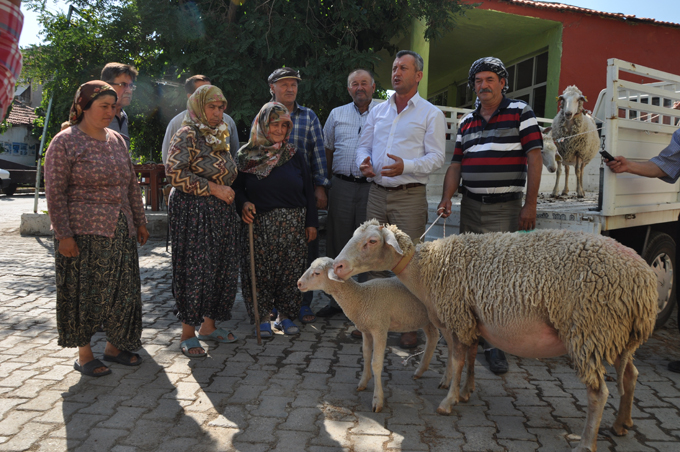 İlk olarak Süleymanlı Köyü’ndeki yoksul ailelere koyunları teslim eden Başkan Tahir Şahin; “Seçim sonrası Aslan Mehmet adlı vatandaşımızın önerisini gerçekleştirmenin mutluluğunu yaşıyorum. Yeni bağlanan 20 köyümüzde 3 yoksul vatandaşımıza birer koyunu yavrusu ile birlikte vereceğiz. Yılda iki kez doğum yapan koyun türlerinden veriyoruz. İkiz olursa yılda 4 kuzusu olacak demektir, 5 yılda 20 kuzuya çıkma şansı var. Birinci yılda 60 koyun vereceğiz, bir koyunun yılda 4 yavru doğurduğunu düşünürsek; 1 koyun yılda 6 koyun oluyor demektir. Yani 60 koyun 1 yılda 360 koyun olacak. 5. yılda, yani dönem içerisinde 1800 koyun elde edeceğiz. Bu proje kapsamında yine dönem içerisinde 300 yoksul vatandaşımıza katkıda bulunacağız ve bunun mutluluğunu yaşıyoruz. Yoksul vatandaşlarımız sunduğumuz koyunların etinden de sütünden de faydalanacak. Tertemiz duygularla donanmış bu insanlarımıza yardım etmek bana büyük bir keyif veriyor. Belki az veriyoruz ama candan veriyoruz. Balık vermek yerine balık tutmayı öğretiyoruz. Yeni dönemde tarım ve hayvancılığa seçim öncesi verdiğim söz doğrultusunda büyük destekler vereceğiz” dedi.