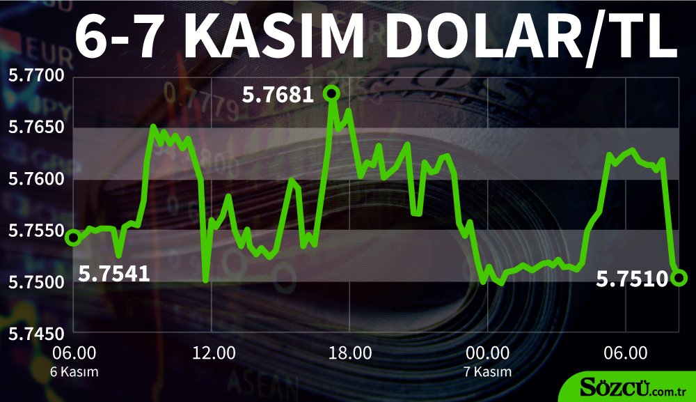 Dolar/TL bugün saat 07.28 itibarıyla 5.7590-5.7643 seviyesinde işlem görüyor. Kurun söz konusu seviyelerdeki seyri devam ediyor.