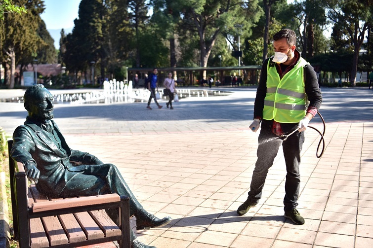 Bornova Belediyesi Temizlik İşleri Müdürlüğü ekipleri, Corona Virüs salgınına karşı, vatandaşların yoğun olarak kullandığı başta parklar olmak üzere kamusal alanlar ile hizmet binalarında temizlik ve ilaçlama yapmaya başladı.