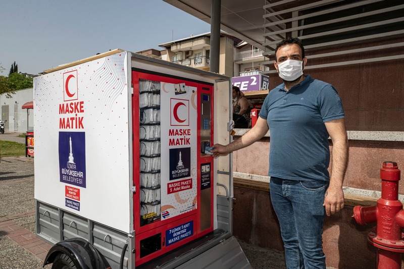 İzmir Büyükşehir Belediyesi’nin küresel salgınla mücadele kapsamında İzmirlilerin maskeye erişimini kolaylaştırmak için maskematiklerden ücretsiz dağıttığı maske sayısı iki aydan kısa bir sürede 6 milyona yaklaştı. Büyükşehir Belediyesi, koronavirüs salgınının ilk gününden itibaren maskeye ulaşma konusunda yaşanan sıkıntıları Meslek Fabrikası bünyesinde yaptığı maske üretimi ve hayata geçirdiği maskematik formülüyle aştı. İzmir’in merkezinde yaşayan yurttaşların tıbbi maskeye erişimini kolaylaştırmak için 17 metro istasyonu ve Karşıyaka, Bostanlı, Konak vapur iskelelerine maskematik yerleştirildi. Buca’da Şirinyer İZBAN durağının yanındaki parka, Çiğli İZBAN istasyon girişine ve Gaziemir Dokuz Eylül Mahallesi Parkı önüne seyyar ise maskematikler kuruldu. 17 Nisan’da devreye alınan maskematikler kentteki maske dağıtım ağının omurgasını oluşturdu . Geride kalan yaklaşık 2 aylık sürede metro istasyonlarındaki maskematiklerden 4 milyon 700 bin, İZDENİZ iskelelerinde 494 bin, seyyar maskematiklerle ise 552 bin adet dağıtım yapıldı.