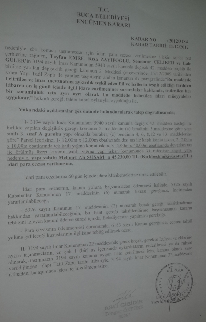 İşte Mehmet Ali Susam’ın kaçak villasına ait yıkım kararı;