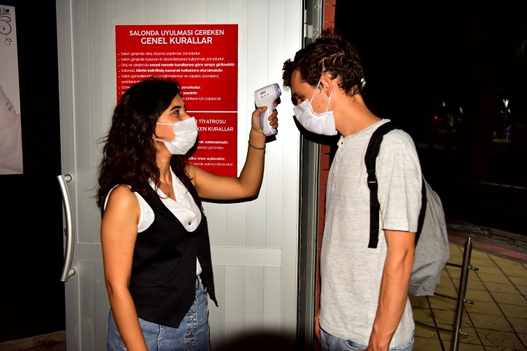 Koronavirüs tedbirlerinin uygulandığı 600 kişi kapasiteli Ayfer Feray Açık Hava Tiyatrosu’na oyundan 30 dakika önce kademeli olarak 300 izleyici alındı. Tüm tiyatroseverlerin maskeleri ile yer aldığı salonun girişinde ateş ölçümü yapılarak el dezenfektanı dağıtıldı. Gösteri arasında ve bitişinde de salonun boşaltılması yönlendirmelerle sağlandı.