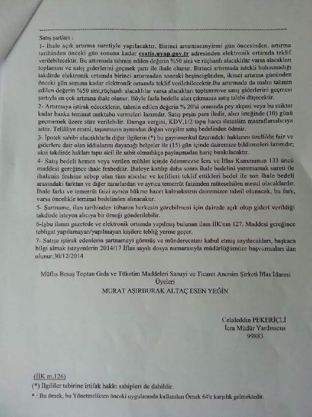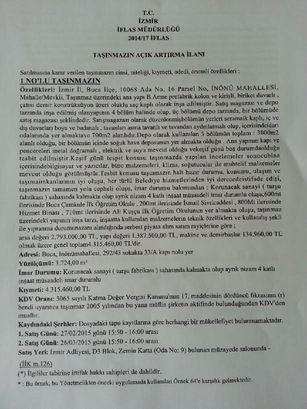 Edinilen bilgilere göre BESAŞ’ın iflas etmesinin ardından bulunan borçları nedeni ile Susam’ın eski fabrikası icradan ötürü satışa çıkarıldı.