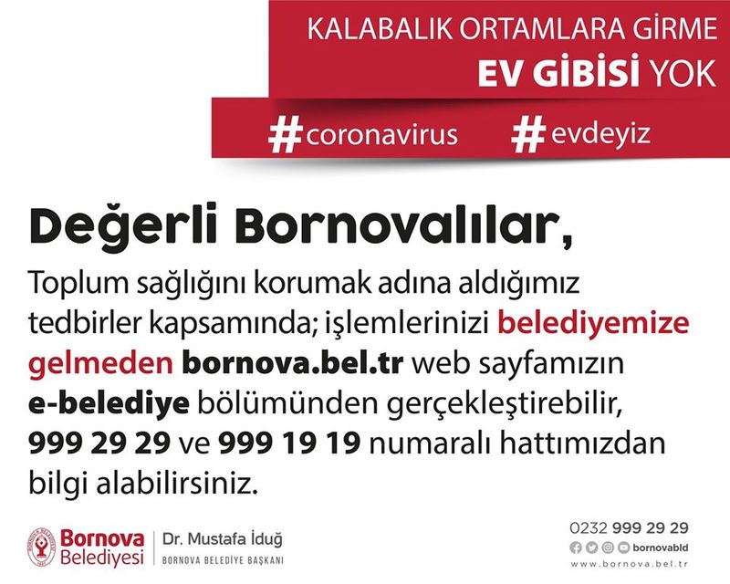 Sağlığın herşeyden önce geldiğini belirten Bornova Belediye Başkanı Dr. Mustafa İduğ, pandeminin başından bu yana pek çok hizmet ve eğitimi internet üzerinden verdiklerini hatırlatarak, “Resmi Gazete’de yayınlanan yasaya göre emlak vergisi, çevre temizlik vergisi, ilan ve reklam vergisi, eğlence ile katı atık vergisi gibi belediye alacakları yapılandırma kapsamına alındı. Bu alanlarda vergi borcu olan vatandaşlarımız yapılandırma işlemlerini belediyeye gelmeden online yapabildikleri gibi yeni sistem ile canlı destek hattı üzerinden de gerçekleştirebilecek. Dijitalleşme ve uzaktan erişim hem çağımızın gereği hem de pandemiden doğan bir ihtiyaç. Bornova Belediyesi de bu alanda gerekeni yaparak dijitalleşiyor” dedi.