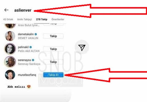 Geçtiğimiz ay da Aslı Enver, şaşırtan bir harekette bulundu. Enver, Boz'un fan hesabını takip etti. Bunu fark eden Instagram kullanıcıları hemen ekran görüntüsü aldı.
