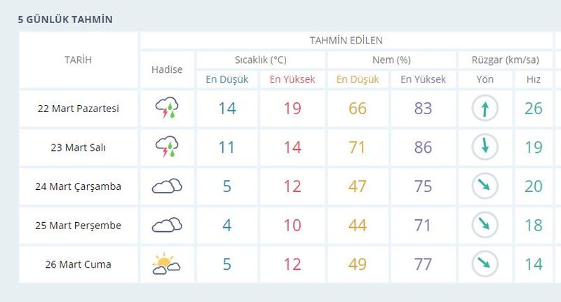 Kentte 5 günlük periyotta zaman zaman yağışlar yaşanacak. Sıcaklıklarda 7-8 derece birden düşecek. Çarşamba, Perşembe ve Cuma günü havanın parçalı bulutlu ve güneşli olması bekleniyor.