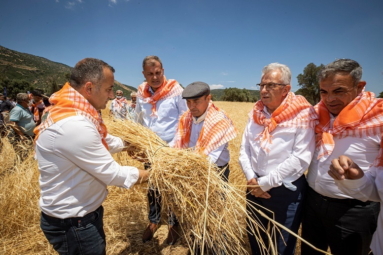 Başkan Soyer saz çavdarı hasadına katıldı