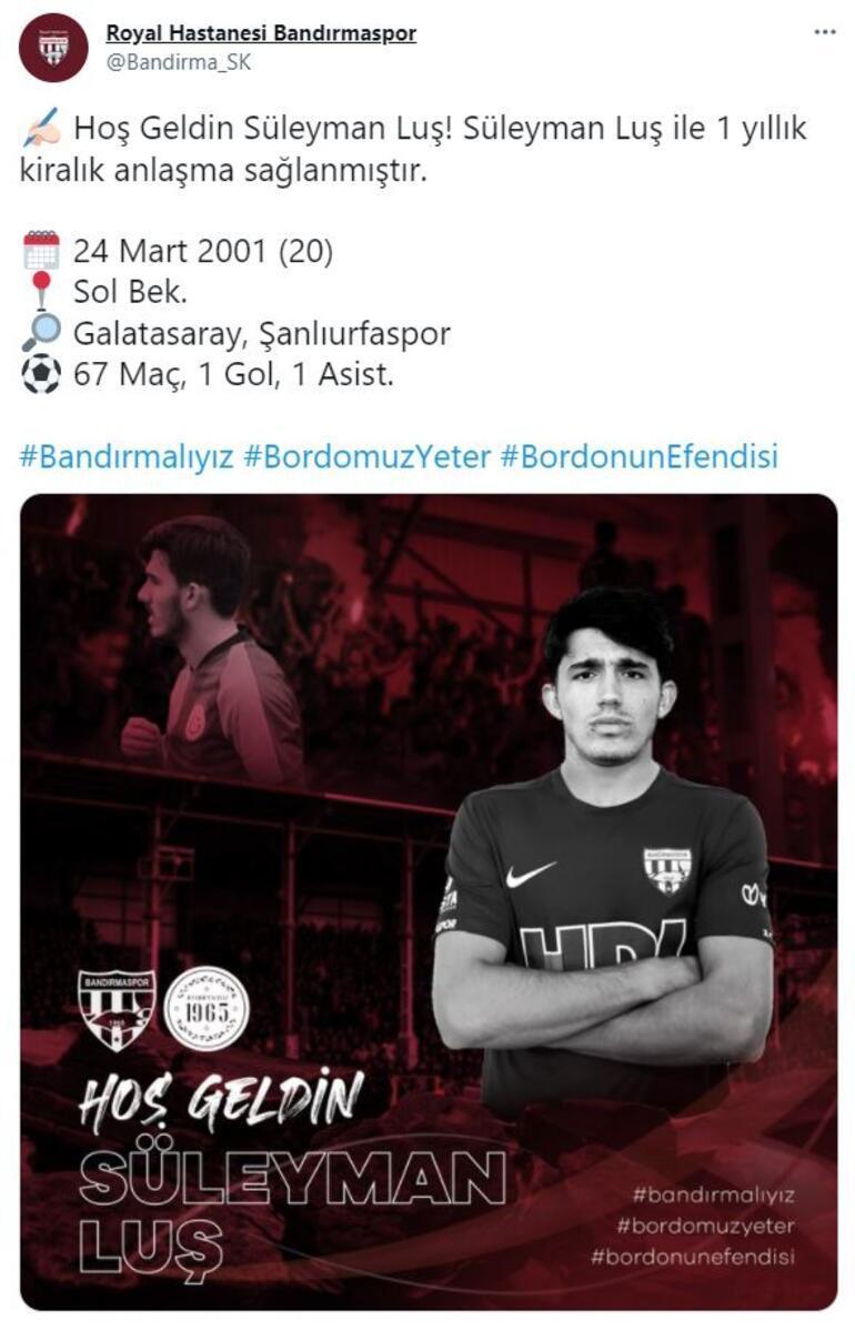 TFF 1.Lig takımlarından Bandırmaspor, Galatasaray'dan Süleyman Luş'u kiraladı.