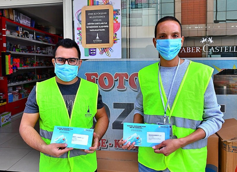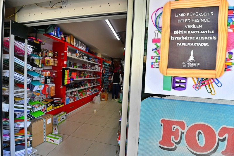 Büyükşehir, 20 bin 800 öğrencinin velisine dağıtılan Eğitim Kart ile 3 milyon 401 bin 320 liralık yardımda bulunuyor. Eğitim Kart uygulamasıyla İzmir Kitap ve Kırtasiyeciler Esnaf Odası ve İzmir Ticaret Odası koordinasyonunda İzmir, Tire, Selçuk, Aliağa, Menemen, Ödemiş, Bergama, Bayındır ve Torbalı ticaret odalarıyla yapılan protokoller ile İzmir’deki toplam 193 kırtasiye esnafına destek olunuyor.