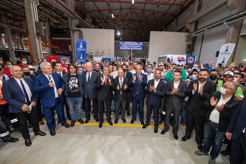 İzmir Büyükşehir Belediyesi'ne bağlı Metro A.Ş. ile Demiryol İş Sendikası arasındaki 9’uncu dönem toplu iş sözleşmesi, Halkapınar İzmir Metro A.Ş. Genel Müdürlüğü’nde düzenlenen törenle imzalandı. Metro ve tramvay işletmelerinde farklı iş kollarında 627 çalışanı kapsayan ve en düşük maaşın brüt 4 bin 856 TL’den, brüt 7 bin 553 TL’ye çıkarıldığı sözleşmenin imza törenine; İzmir Büyükşehir Belediye Başkanı Tunç Soyer, Demiryol- İş Sendikası İzmir Şube Başkanı Hamdullah Giral, Türk İş 3. Bölge Temsilcisi Hayrettin Çakmak, İzmir Metro A.Ş. Genel Müdürü Sönmez Alev, İzmir Metro A.Ş Yönetim Kurulu Başkanı Raif Canbek ile sendika temsilcileri ve işçiler katıldı. Başkan Tunç Soyer, “Eşit işe eşit ücret”, “Halkçı Başkan”, “Büyük Başkan” sloganlarıyla ve “Güzel günler göreceğiz” sloganları ile karşılandı.