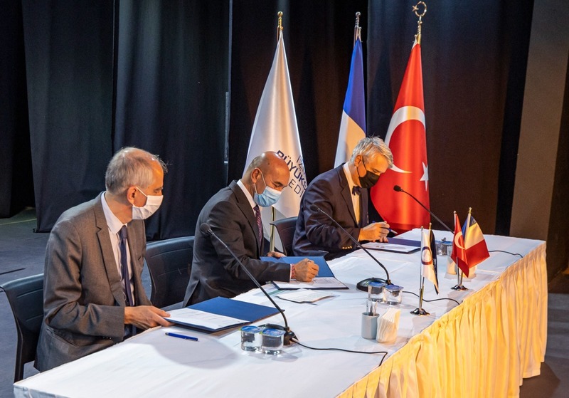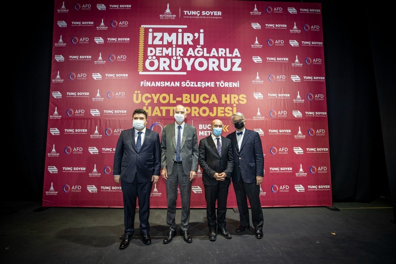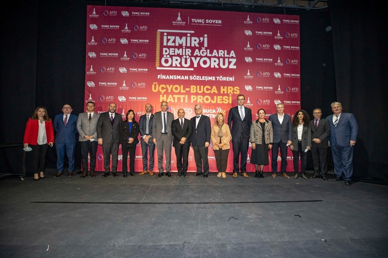 İzmir Büyükşehir Belediyesi, kent tarihinin en büyük yatırımı olacak Üçyol-Buca Metrosu için Avrupa İmar ve Kalkınma Bankası’nın (EBRD) ardından Fransız Kalkınma Ajansı (AFD) ile de 125 milyon Euro’luk dış finansman sözleşmesi imzaladı. Hazine garantisiz, 4 senesi anapara geri ödemesiz olmak üzere toplam 12 yıla uzanan vadeye sahip 125 milyon Euro tutarındaki dış finansman sözleşmesi İzmir Büyükşehir Belediye Başkanı Tunç Soyer ile Fransa’nın Türkiye Büyükelçisi Herve Magro ve AFD Balkanlar, Ortadoğu, Asya Direktörü Philippe Orliange tarafından imzalandı.