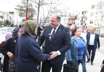 İzmir Büyükşehir Belediyesi’nin desteklerinden bahsetti. “Urla’da altyapı sorunlarını çözmeye çalışıyor, Büyükşehir belediye başkanımız Tunç Soyer ve İl başkanımız Deniz Yücel ilçemize ziyaretlerde bulunup desteklerini eksik etmiyorlar.