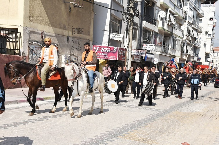 Deve Gösterileri heyecanı, etkinliğe katılacak develerin dün düzenlediği kortejle başladı. Menemen Belediyesi önünden başlayan kortej yürüyüşü, davullar ve zurnalar eşliğinde Halil Alkaya Pazar Yeri’ne kadar sürdü. Menemen halkının da coşkuyla katıldığı kortej, renkli görüntülerin oluşmasına neden oldu.