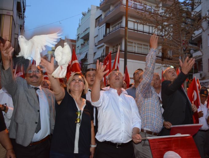 Ortak deklarasyonun okunmasının ardından Menemen Cumhuriyet Meydanı’nda beyaz güvercinler uçurularak, tüm dünyaya barış mesajları aktarıldı.
