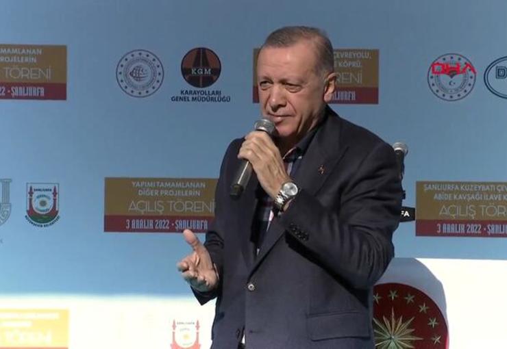 AKP'li Cumhurbaşkanı Recep Tayyip Erdoğan, Şanlıurfa Abide Kavşağı'nda, Şanlıurfa Kuzeybatı Çevre Yolu, Abide Kavşağı İlave Köprü Viranşehir Pompaj Sulaması 1. ve 2. Kademe ile yapımı tamamlanan diğer projelerin toplu açılış töreninde konuştu.