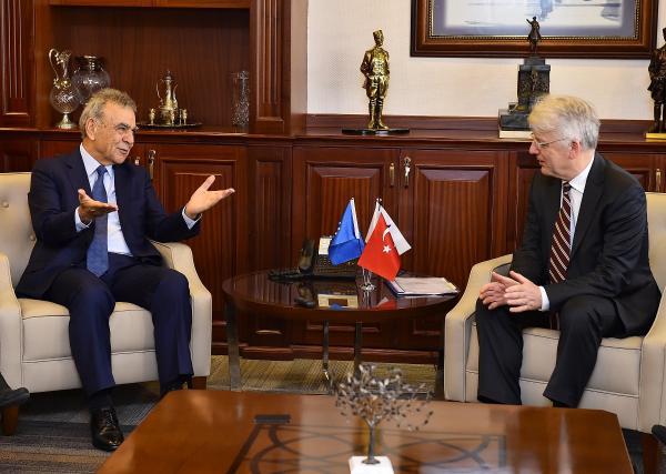 Suriyeli göçmenlerin kente etkilerini gözlemlemek üzere İzmir'e gelen AB üyesi ülkelerin büyükelçileri, Büyükşehir Belediye Başkanı Aziz Kocaoğlu ile buluştu. Başkan Kocaoğlu, “Avrupa Birliği içinde olmamız, en az Türkiye kadar Avrupa Birliği ülkelerinin de lehinedir" dedi.