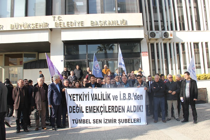 Tüm Yerel-Sen İzmir 1 Nolu Şube İdari Sekreteri Altıner, geçen dönemlerde İZSU’da üye sayısı bakımından kendilerinin yetkili sendika olmasına rağmen genel sayı ele alındığından sözleşme imzalayamadıklarını söyledi. Tüm Bel-Sen İzmir 1 Nolu Şube Başkanı Ulus Bozkır ise, her zaman İBB ve ESHOT’un aynı, İZSU’nun ayrı olarak ele alındığını, Büyükşehir Belediyesi’nin de bunu savunduğunu dile getirdi.