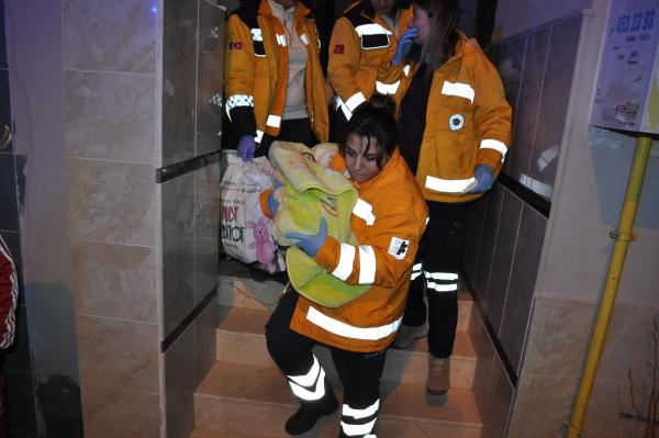 Dairelerden çıkanlar, soğuk havanın etkisiyle ağlamaya başlayan erkek bebeği hemen zemin kattaki eve aldı, ardından da polis ve sağlık ekiplerine haber verdi. Polis, bebeği bırakan kişilerin bulunması için çalışma başlattı. Bebeğin bırakıldığı yere ilk gelen sağlık ekipleri, talihsiz bebeği sağlık kontrolünden geçirdi. Durumu iyi olan bebeğin soğuktan etkilendiği belirlendi. Bunun üzerine içinde kuvöz bulunan yeni doğan bebek için ambulans istendi. Kısa süre sonra söz konusu adrese gelen ambulanstaki sağlık görevlileri, bebeği alıp kuvöze koydu. Terk edilen bebek ambulansla Behçet Uz Çocuk Hastalıkları Hastanesi'ne kaldırıldı.