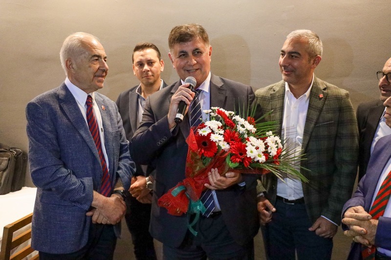 İzmir Büyükşehir Belediye Başkanı Dr. Cemil TUGAY, aralarında önceki dönem Büyükşehir Belediye Başkanı Aziz Kocaoğlu, önceki dönem Narlıdere Belediye Başkanı Ali Engin, eski milletvekille...