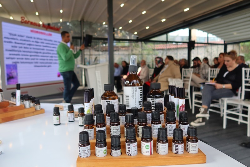 Ziraat Yüksek Mühendisi Aromaterapist Ersel Şengel ise aromaterapide kullanılan bitki yağlarının kullanıma ilişkin genel kuralların yanı sıra elde edilen uçucu yağların hangi alanlarda etkili olduğuna dair kapsamlı bir sunum gerçekleştirdi. Ersel Şengel, pek çok konuda olduğu gibi tıbbi aromatik bitkilerde de kullanılan dozun çok önemli olduğunu belirterek, tüketicileri özellikle çeşitli esanslarla koku özelliği kazandırılarak aromatik yağ etiketiyle satılan ürünlere karşı uyardı. Fayda elde etmek için satın alınan tıbbi aromatik bitki ürünlerinden zarar görmemek için güvenilir firmalardan alışveriş yapılmasının önemine vurgu yapan Şengel, son yıllarda doğal ürünlere yönelimin arttığını belirtti.