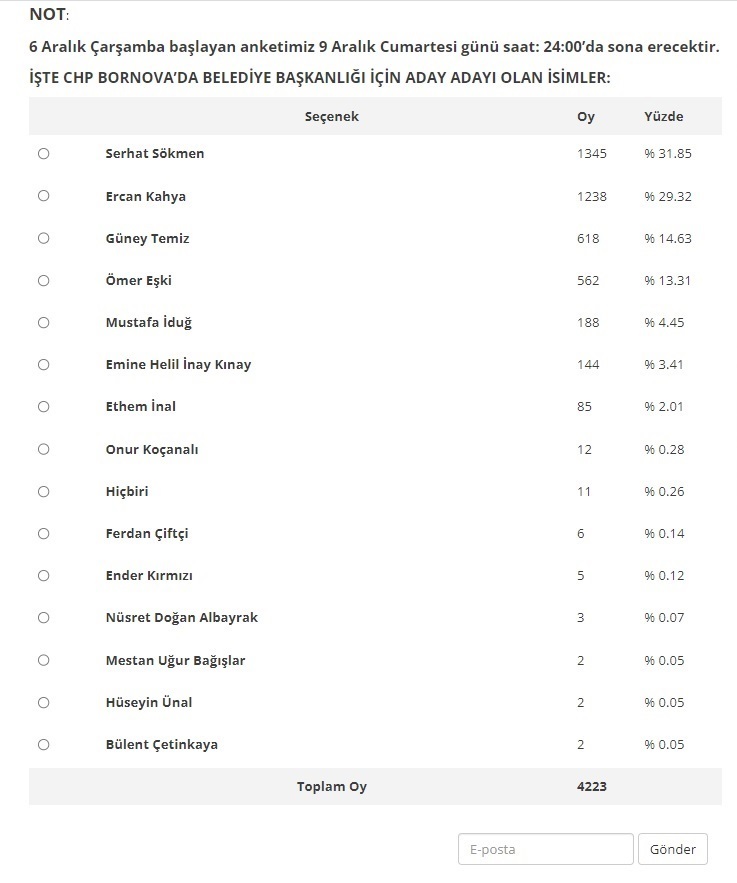Anketimizde: “CHP Bornova’da aday olarak kimi görmek istersiniz?” sorusunu sorduk.