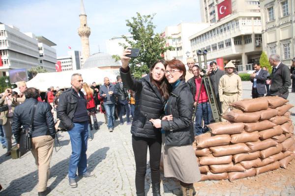 Aile ve Sosyal Poltikalar İzmir İl Müdürlüğü, Konak Meydanı'nda 18 Mart Çanakkale Zaferi Şehitleri Anma Günü nedeniyle etkinlik düzenledi. Meydanda, Çanakkale Savaşı'ndaki cephe görüntülerinin bir benzeri oluşturuldu. Temsili görüntülerde sedyede yerde yatan yaralı, siperde nöbet tutan, telgraf çeken asker yer aldı.
