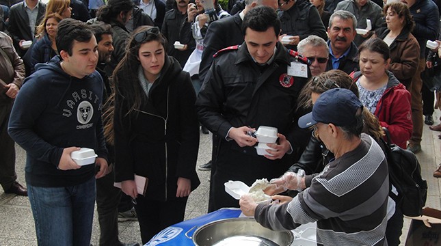 Büyükşehir memurundan pilavlı eylem