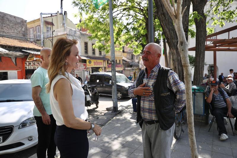 Konak Belediye Başkanı Nilüfer Çınarlı Mutlu, Ramazan Bayramı’nın hemen ardından sahaya inerek esnaf ve vatandaşın hem geçmiş bayramını kutladı hem de hayırlı işler dileğinde bulundu. Gezisine Anafartalar Caddesi’nden başlayan Başkan Mutlu, esnaftan gelen istek ve dilekleri dinlemenin yanı sıra sorunları ve yapılması gerekenleri de yerinde tespit etti.
