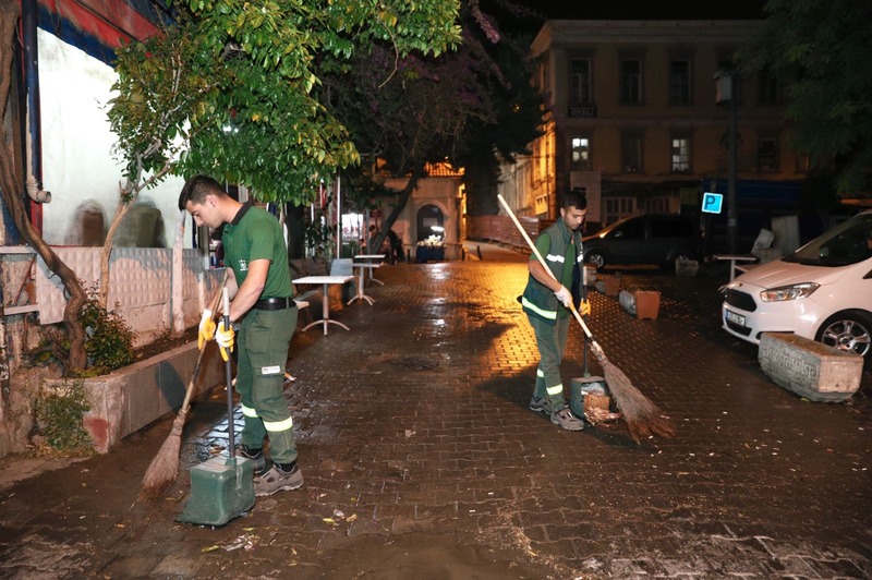 Başkan Mutlu’nun talimatıyla harekete geçen Konak Belediyesi Fen İşleri, Park ve Bahçeler ile Temizlik İşleri Müdürlüğü ekipleri tarihi Basmane bölgesinde temizlik ve bakım çalışması gerçekleştirdi. Gece saatlerinde de devam eden çalışmalarda hem tarih ortaya çıktı hem de yenilenmiş ve temizlenmiş bir caddeye kepenk açma fırsatı bulan esnaf rahat bir nefes aldı.