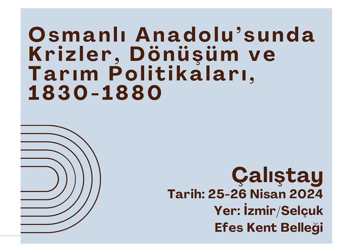 Efes Selçuk Belediyesi, Dokuz Eylül Üniversitesi ve İzmir Kâtip Çelebi Üniversitesi’nin iş birliği ile “Anadolu Çevre Tarihi Söyleşileri” tarafından düzenlenen Osmanlı Anadolusu’nda Krizler, Dönüşümler ve Tarım Politikaları, 1830-1880 Çalıştayı’nda dönemin tarihi, sosyal ve ekonomik yapısı çerçevesinde tarım politikaları ve yaşanan krizler masaya yatırılacak.