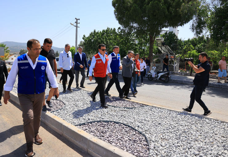 Muğla Büyükşehir Belediye Başkanı Ahmet Aras Bodrum’da devam eden Büyükşehir yatırımlarını yerinde incelemek için ilçeye ziyarette bulundu ve vatandaşlarla bir araya geldi. Başkan Aras Mumcular yolu incelemesinde açıklamalarda bulundu ve buradaki çalışmanın içme suyu hattının yenilenmesi nedeni ile yapıldığını belirtti. Başkan Aras; “Mumcular’da çalışmaların temel nedeni içme suyu hattının yenilenmesiydi. Yolun durumu da iyi değildi. Önce içme suyu hatları yenilendi sonra yağmur suyu hatları yapıldı. Kilit parke yol olduğu için çöküntüler mevcuttu. Zeminde balçık olduğu için buradaki çalışmalara zemin iyileştirme ile başlandı. Burada içme suyu hatları yenilenmesi yanında AYDEM’in enerji hatlarını yeraltına alması gerekiyordu ama yatırım programına alınmadı. Mumcular’da çalışmaların yüzde 90’ını bitirdik. Orta refüj bitti, peyzaj düzenlemesi devam ediyor. Kaldırım çalışmalarının büyük bölümü tamamlandı, 600 metresi kaldı. Burada çalışmalar biraz uzun sürdü. Bu işi hızlandırmak için tüm ekibimizle buradayız. Yolu vatandaşlarımızın hizmetine sokmak için var gücümüzle çalışıyoruz.” dedi.
