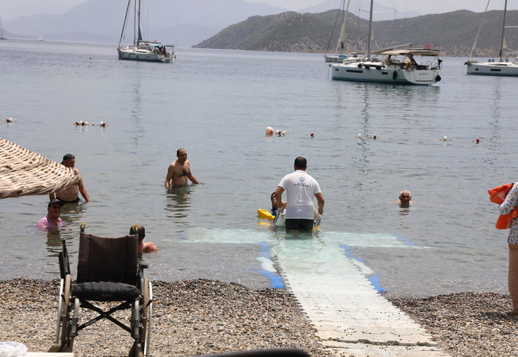 Muğla Büyükşehir Belediyesi il genelinde kurduğu engelsiz plajlarla engelli vatandaşların denize girmesini kolaylaştırıyor. Bu projeyle, hem engelli bireyler hem de aileleri deniz keyfini engelsiz bir şekilde yaşayabiliyor. Engelsiz plajdan faydalanan Egemen Köklüce “Engelsiz plajlar bizim için çok rahat oluyor, denize girip çıkma açısından” dedi.