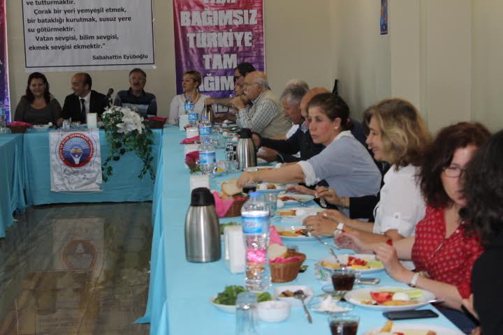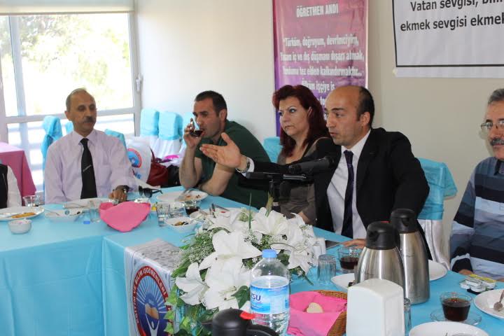 Eğitim İş 1 No.lu Şube Başkanı Bülent Turan kahvaltılı ödül töreninde Köy Enstitüleri ile ilgili hazırlanmış bir sinevizyon gösterisi sundu. Ardından emekli öğretmenlerimize hitaben şöyle konuştu: