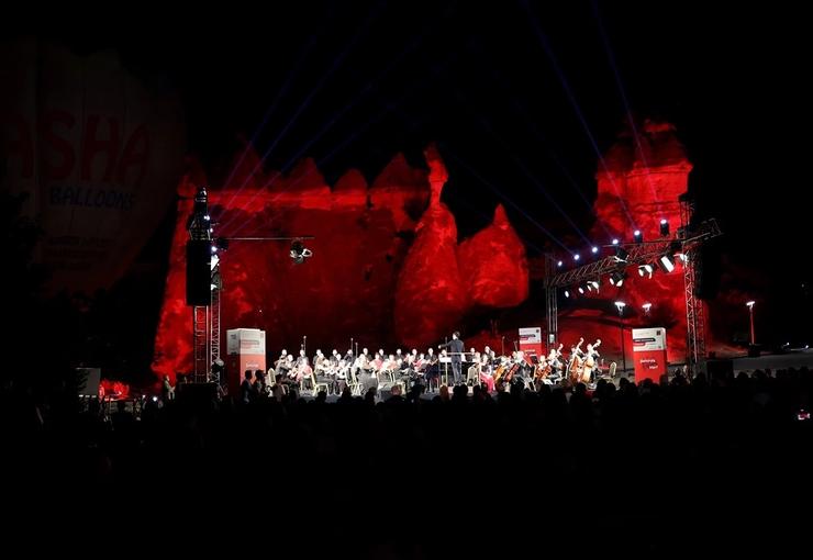 Nevşehir Kültür Yolu Festivali kapsamında Paşabağları Ören Yeri'nde oluşturulan etkinlik alanında, konuklar Buenos Aires Orkestrası'nın senfoni konserini dinledi.