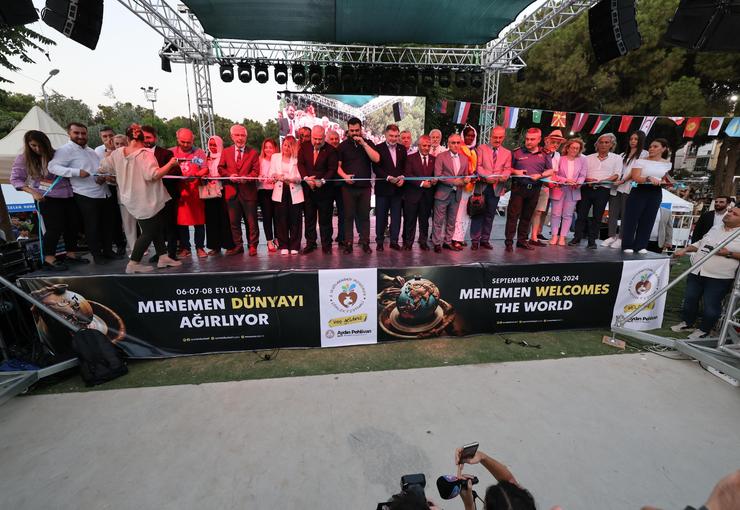 Saygı duruşu ve İstiklal Marşı ile başlayan tören, Menemen Belediyesi Halk Oyunları Ekibi tarafından sergilenen dans gösterisiyle devam ettikten sonra kürsüye çıkan ilk isim Menemen Belediye Başkanı Aydın Pehlivan oldu. Pehlivan, “Bugün burada, 6 bin yıllık köklü geçmişiyle artık çömlekçiliğin başkenti sayılan Menemen’de bu kadim sanatı yeniden dünya sahnesine taşımanın gururunu yaşıyoruz. Menemen, Türkiye’nin çömlekçilikteki en önemi merkezlerinden biri olarak başköşedeki yerini almıştır. Bugün üçüncüsünü gerçekleştirdiğimiz Uluslararası Menemen Çömlek Festivalimiz ile insanlık tarihi kadar eski olan çömlekçiliği, uluslararası bir seviyeye ulaştırmış olmanın mutluluğunu yaşıyoruz. 2022 yılında başlattığımız festivalimiz, 18 ülkeyle çıktığı bu yolda, bugün 39 ülkeye ulaşmış durumda. Filistin’den Brezilya’ya, Hindistan’dan Hollanda’ya kadar çömleğin yapıldığı, konuşulduğu her yerde Menemen’in izleri artık belirgin hale geliyor. Bu başarının da en büyük kahramanları hiç şüphesiz ki Menemen’in sanatçıları, ustaları ve emekçileridir. Bugün buradan ilan ediyorum ki; çömlek festivalimiz, ulusal ve uluslararası seviyede sektörün en önemli festivali olarak herkes tarafından kabul gördü ve tarihe not düşüldü.” ifadelerini kullandı.