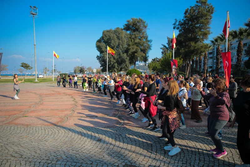 Sporun herkes için ulaşılabilir olması ve sağlıklı yaşamı teşvik etmek amacıyla faaliyetlerini sürdüren Konak Belediyesi, kadınları açık havada zumba dans etkinliğiyle buluşturdu. Güzelyalı Denizatı Parkı’nda düzenlenen aktivitede bir araya gelen kadınlar, eğitmenler eşliğinde zumba yaparak stres attı. Kursiyerlerin ve semt sakini kadınların yoğun ilgi gösterdiği etkinliğe Konak Belediye Başkanı Nilüfer Çınarlı Mutlu da katıldı. Coşkulu şarkılarla zumba yapan kadınlara eşlik eden Başkan Mutlu, dans ve sporu birleştirerek keyifli anlara sahne olan etkinliğin ilçenin farklı noktalarında da yapılacağını müjdeledi. Yaklaşık bir saat süren etkinlik İzmir Marşı ve ardından Cumhuriyet’in 100. yılı için bestelenen Parla Marşı’nın hep bir ağızdan söylenmesiyle son buldu.