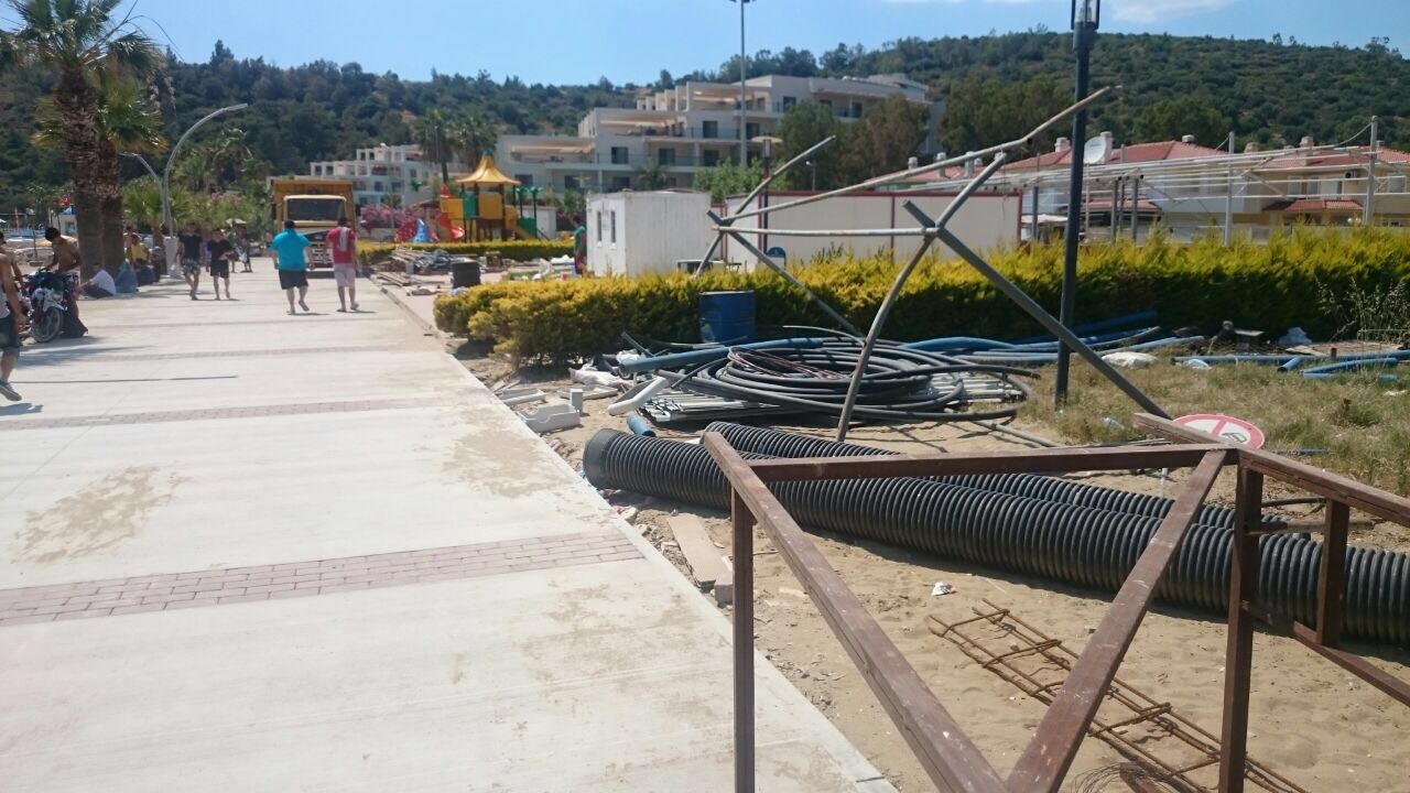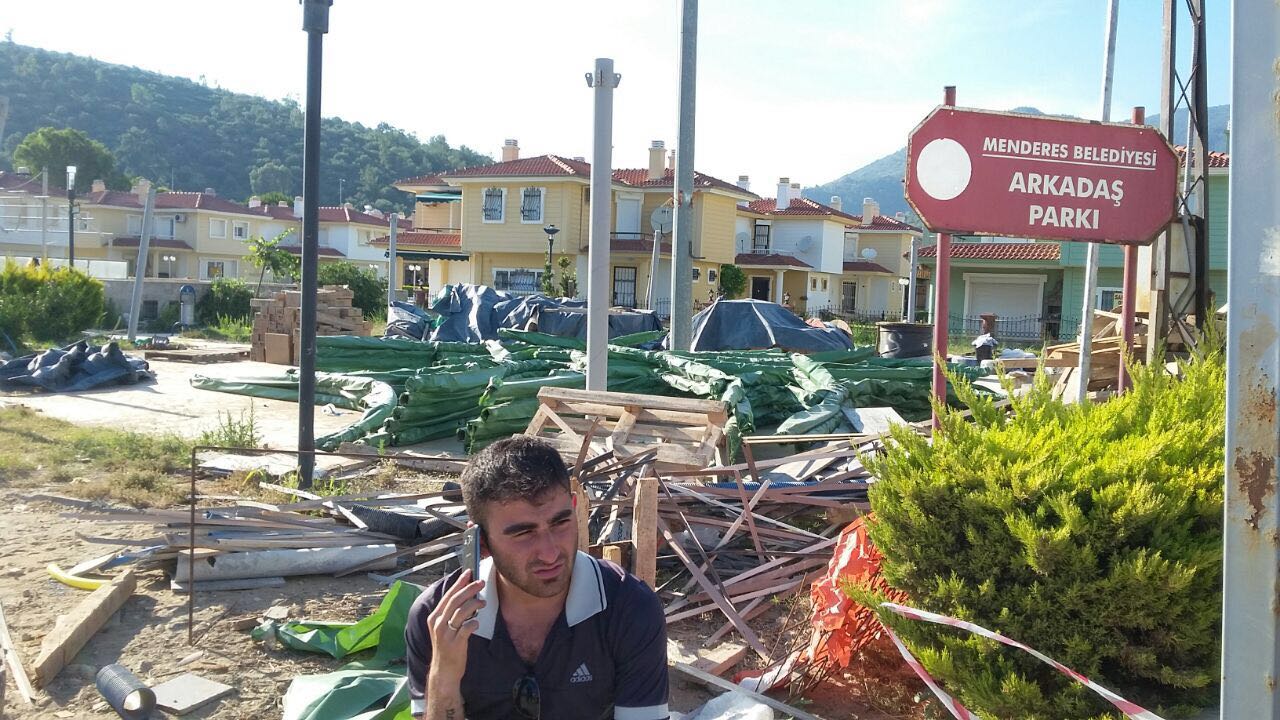 Ege’nin Sesi-Menderes Belediyesi’ne ait olan ve tatilcilerin her yıl ucuz fiyat politikası ve kalitesinden dolayı uğrak yerlerinden olan Arkadaş Parkı’nın şantiye alanına döndürülmesi tatilcileri üzdü. İçerisinde çocuk parkı, amfi tiyatro, tuvalet ve kafeterya gibi hizmetlerin bulunduğu parkta şimdi ise konteyner, kamyon, kepçe ve inşaat malzemeleri gibi şeyler duruyor. Paloma Pasha Oteli’nin yanında olan ve sahile sıfır kilometre uzaklıkta olan parkın ruhsatının bu yıl Menderes Belediye Başkanı Bülent Soylu tarafından iptal edildiği öğrenildi.