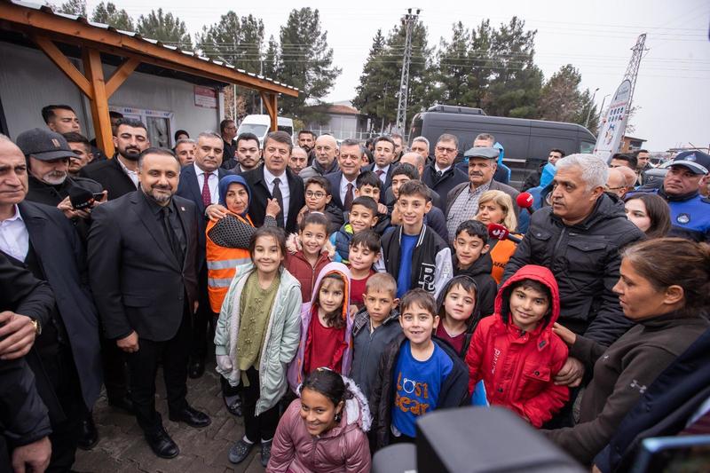CHP Genel Başkanı Özgür Özel ile İzmir Büyükşehir Belediye Başkanı Dr. Cemil Tugay, depremde yıkılan Adıyaman Belediyesi Hizmet Binası’nda vefat eden personelin ailelerini de unutmadı. Ailelerle bir araya gelen heyet konteyner kentte yaşayan halk buluşmasında yer aldı. İzmir Büyükşehir Belediyesi tarafından ailelere ve çocuklara çeşitli hediyeler sunuldu.