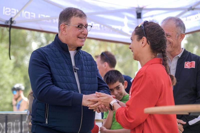 İzmir Büyükşehir Belediye Başkanı Dr. Cemil Tugay, İzmir Büyükşehir Belediyesi ve Türkiye Triatlon Federasyonu iş birliğiyle Sasalı Piknik Alanı'nda düzenlenen İzmir Duatlonu Türkiye Kupası ödül törenine katıldı. Türk sporuna ve İzmir'de spor kültürünün yaygınlaşmasına katkı sağlayan İzmir Duatlonu, yakın zaman önce Okul Sporları Halter Şampiyonası'na giderken trafik kazası sonucu yaşamını yitiren Nisa Yıldızer'in anısına düzenlendi. On yedisi İzmir Büyükşehir Belediyesi Spor Kulübü bünyesinden olmak üzere 600'e yakın sporcunun katıldığı İzmir Duatlonu'nda, son iki yıldaki müsabakalar dahil olmak üzere en yüksek katılım gerçekleşti. Başkan Dr. Cemil Tugay, “Yaş Grupları” kategorisinde ödül verirken, Genç, Elit ve Paralimpik yarışlarının da startını verdi. Türkiye Triatlon Federasyonu Genel Sekreteri Göktürk Yılmaz, Başkan Tugay'a spora desteklerinden ötürü teşekkür plaketi takdim etti.