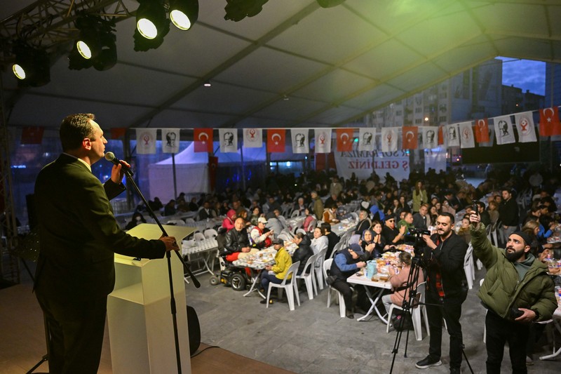 Bornova Belediye Başkanı Ömer Eşki ise Çanakkale Zaferi’nin 110. yılını anarak başladığı konuşmasında, Ramazan ayında siyasetten kaçınmak istese de adalet konusundaki haksızlık karşısında sessiz kalamayacağını belirtti. Başkan Eşki, "Ramazan'ın mübarek ikliminin ülkemize yansımasını, sofralarımıza bereket, topraklarımıza huzur ve bugün bir kez daha zedelenen adaletin bu ülkeye ulaşmasını diliyorum. Bugün ülkemiz yine bir adaletsizlikle, hukuksuzlukla karşı karşıya kaldı. Ellerimizin semaya açıldığı, duaların kabul olduğu bu günde hem Yüce Allah'tan hem de bu yüce milletten adalet diliyorum. Biliyorum ki bu hukuksuzluğu bu topraklardan silecek olan yine bu milletin ferasetidir, dik duruşudur. Buradan açıkça söylüyorum: Bu hukuksuzluğa karşı dimdik duracağız, yılmadan mücadele edeceğiz. Ekrem Başkan’a yapılan bu zulmün, aslında tüm Türkiye Cumhuriyeti halkına yapıldığının farkındayız ve buna karşı kararlılıkla duracağız. Ramazanınızı kutluyor, hayırlı akşamlar diliyorum." diye konuştu.